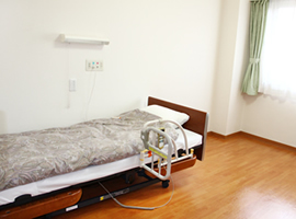| 居住設備 | 介護用電動ベッド・テレビ配線・ナースコール・電話配線・暖房便座付トイレ・クローゼット・洗面台・カーテン・冷暖房 |