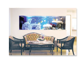 談話コーナーには水族館みたいな2.6mの大きな水槽に、ゆったりと泳ぐカラフルな海水魚には癒されます