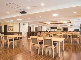 | 居住設備 | 全室個室(18.93㎡~20.19㎡)/車椅子でも入れる洗面・トイレ付き/ソファーや椅子などの設置も可能 エアコン・洗面台・トイレ・ケアコール・スプリンクラー・介護ベット |