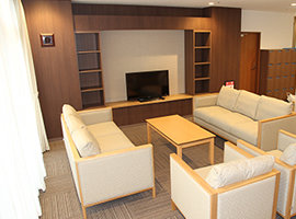 車椅子でもゆったり入れるトイレや洗面台、各所の手すりやクッション性のある床材、入浴介助が必要な方のための入浴機械など、ご入居者さまが安心・安全に暮らせる設備が整っています。明るい採光と落ち着いた雰囲気のエントランス、皆が集えるアットホームなラウンジもございます。広い食堂には特大スクリーンも完備。 ロビー、食堂、居室、機械浴室、スタッフステーション他 |