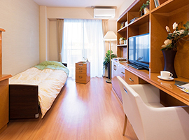 | 居住設備 | 居室総数84室、定員数84名 全室個室…18.00㎡~19.20㎡ (介護ベッド、洗面台、収納、トイレ、エアコン、照明、TV端子、電話ジャック、呼び出しボタン) |