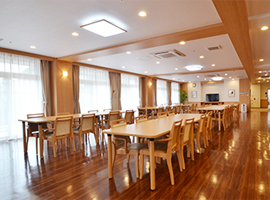ロビー、食堂(機能回復訓練)、ラウンジ、健康管理室、相談室、浴室、機械浴室、洗濯室、トイレ、ケアコール、スプリンクラー、 |