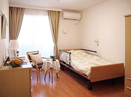 | 居住設備 | 緊急通報装置、テレビ回線、エアコン、クローゼット、防災設備、空調換気設備、照明器具、カーテン、寝具、洗浄機能付トイレ(車いす対応・緊急コール付)、車椅子対応洗面化粧台、チェスト、介護用電動介護ベッド |