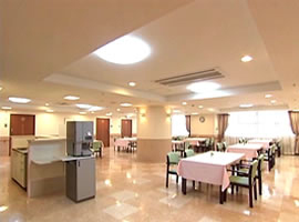 機能訓練室、医務室(健康管理室)娯楽室、相談室、食堂、談話室、喫茶コーナー、理・美容室、浴室、機械浴室、洗濯室、トイレ、乾燥室、緊急コール |
