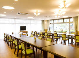 オゾン消臭装置、浴室(一般浴槽・特殊浴槽・個別浴槽)、冷暖房、健康管理室、相談室、ウォシュレット付トイレ、洗濯乾燥機、談話コーナー兼機能訓練コーナー、食堂、エントランス、ストレッチャー対応エレベーター、スプリンクラー |